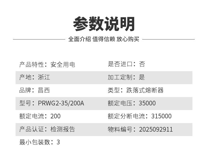 昌西制造商35kV防风型跌落式熔断器PRWG2-35-200A出厂价